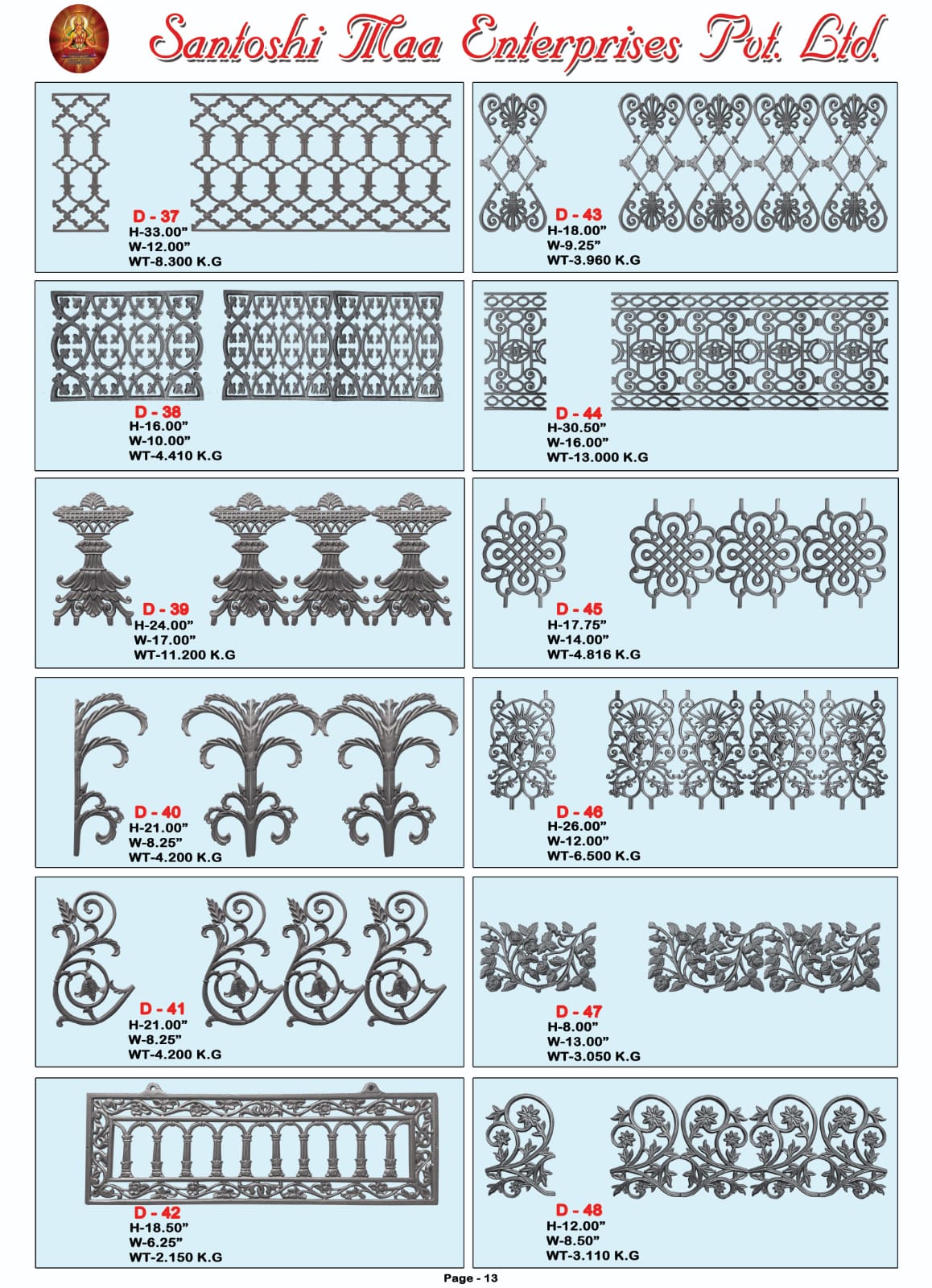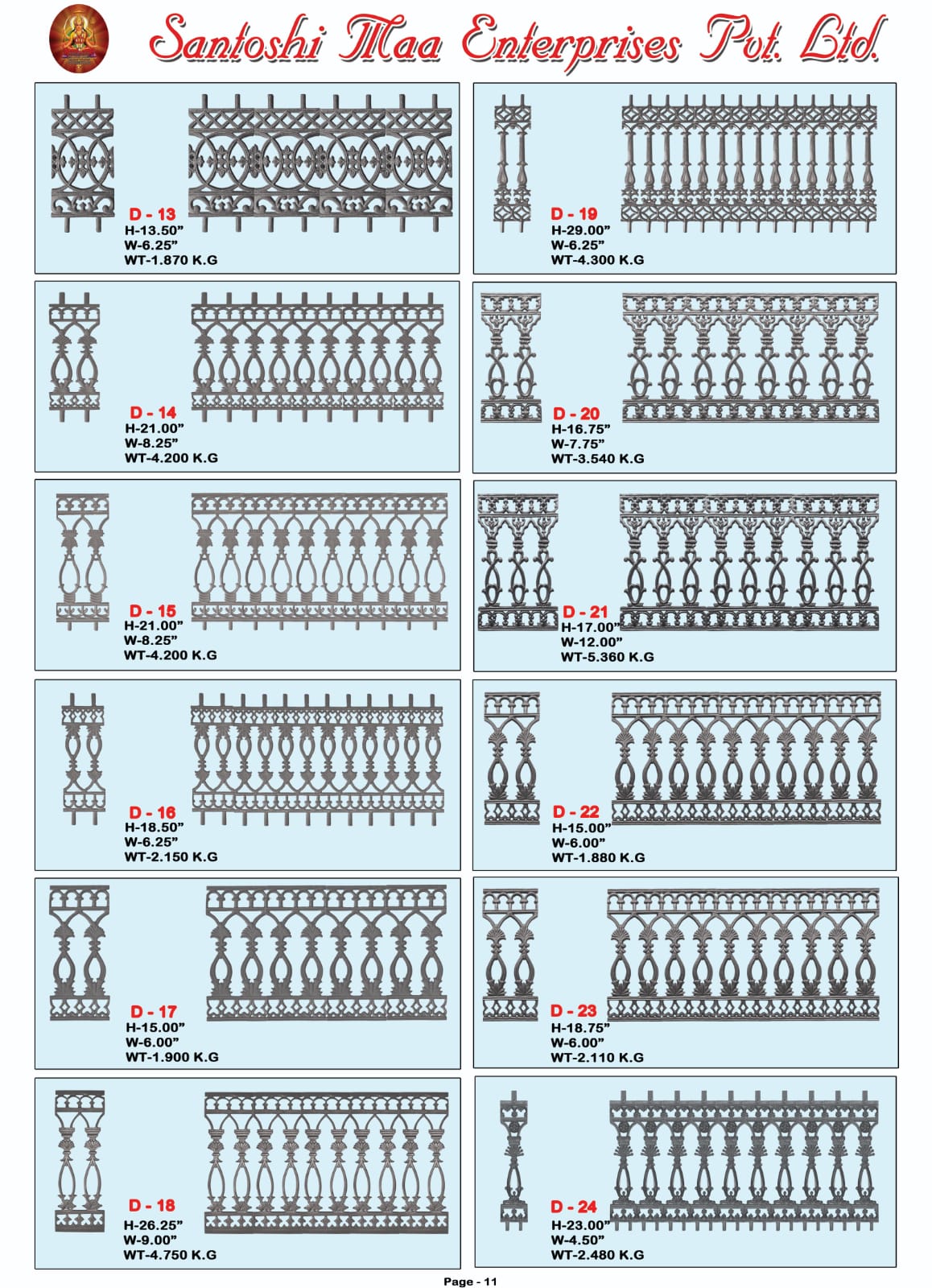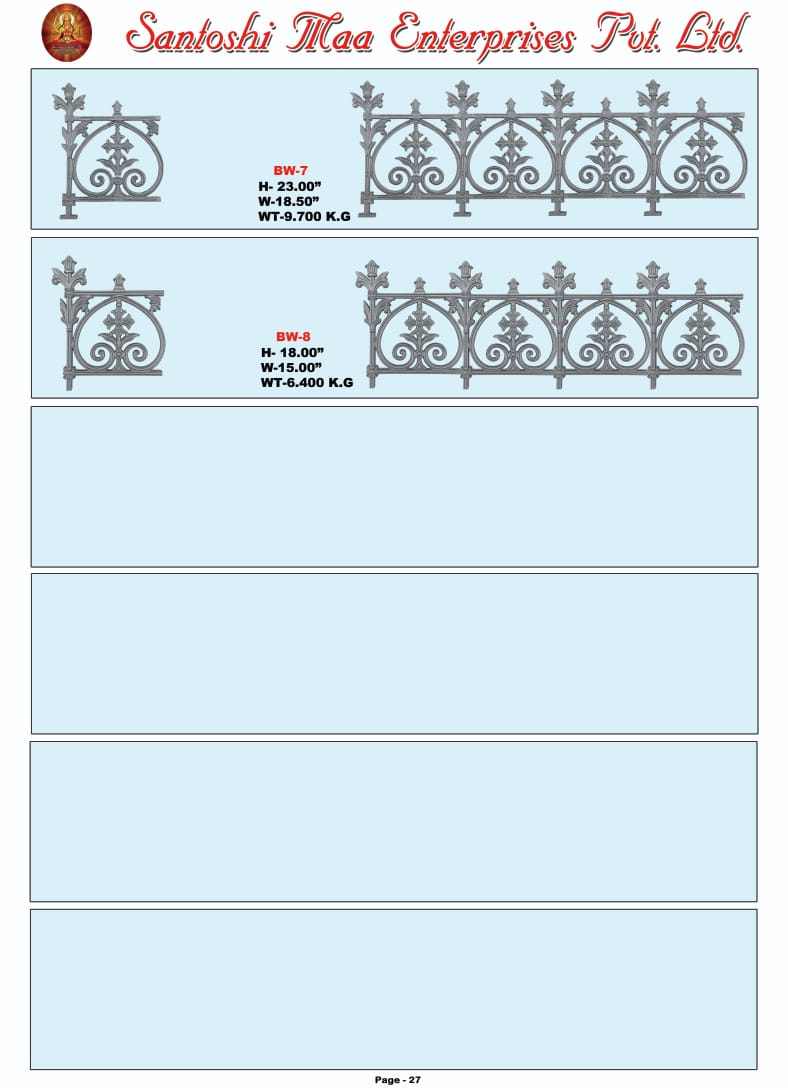 "What impressed us most about Santoshi Maa Enterprises Pvt. Ltd is their professionalism and timely delivery. Their cast iron railings and decorative items have transformed our spaces beautifully."